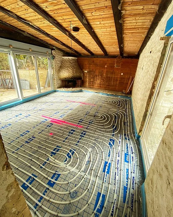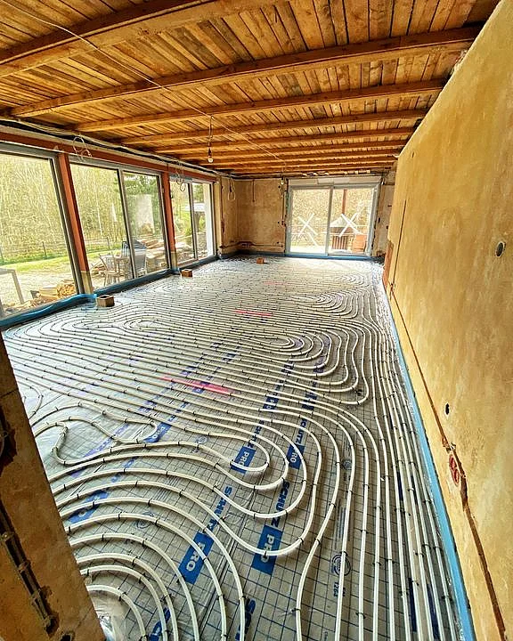 Wie angekündigt, hier die verlegte Fußbodenheizung in der Nähe von Schauenstein. Jedes Mal aufs Neue ein faszinierender Anblick, oder? 😊