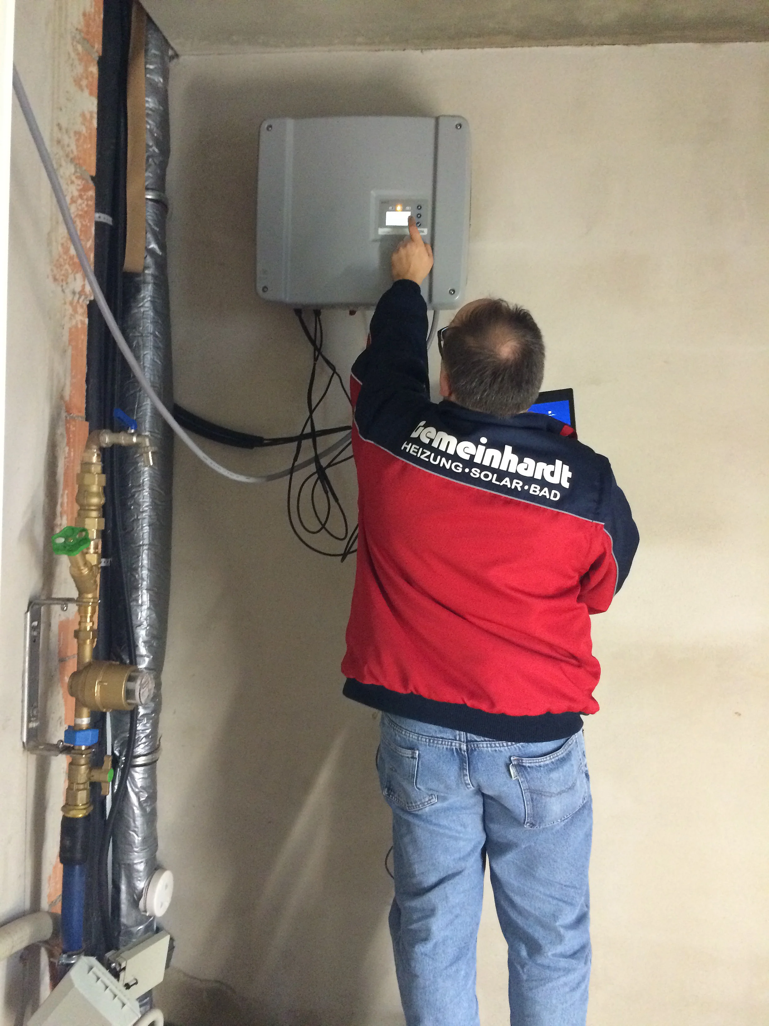 Es ist wirklich faszinierend zuzusehen, wie sich trotz des heute extrem trüben Wintertages die Farbe der LED-Anzeige von rot über gelb nach grün ändert und der Wechselrichter über sein Display verkündet, dass Strom jetzt produziert wird.