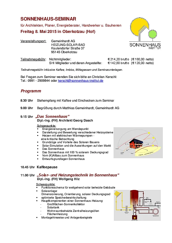 eines aktuelles Tagesseminar zum Thema Sonnenhaus statt. Geplante Themen sind z.B.